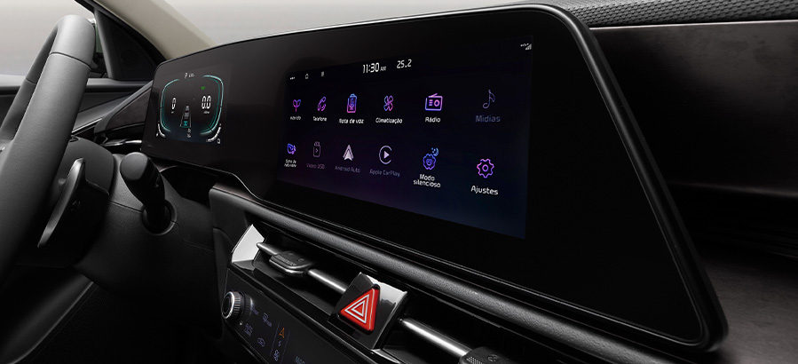 Ao entrar no Niro, a primeira impressão é de estar em um carro de categoria superior. O painel é dominado por duas telas integradas de 10,25 polegadas cada uma. Uma funciona como painel de instrumentos 100% digital e a outra como uma central multimídia completa, criando um ambiente imersivo e futurista.