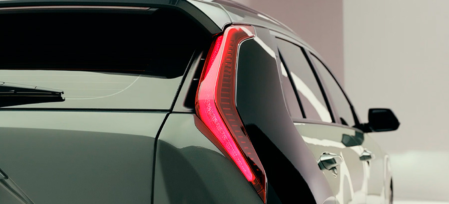 A dianteira é imponente, com faróis e luz de condução diurna (DRL) em LED que garantem um visual tecnológico e uma iluminação fantástica. Na traseira, as lanternas verticais em LED e o spoiler integrado reforçam a robustez do carro. As rodas de liga leve diamantadas de 18 polegadas completam o conjunto, dando ao Niro uma postura elegante e dinâmica.